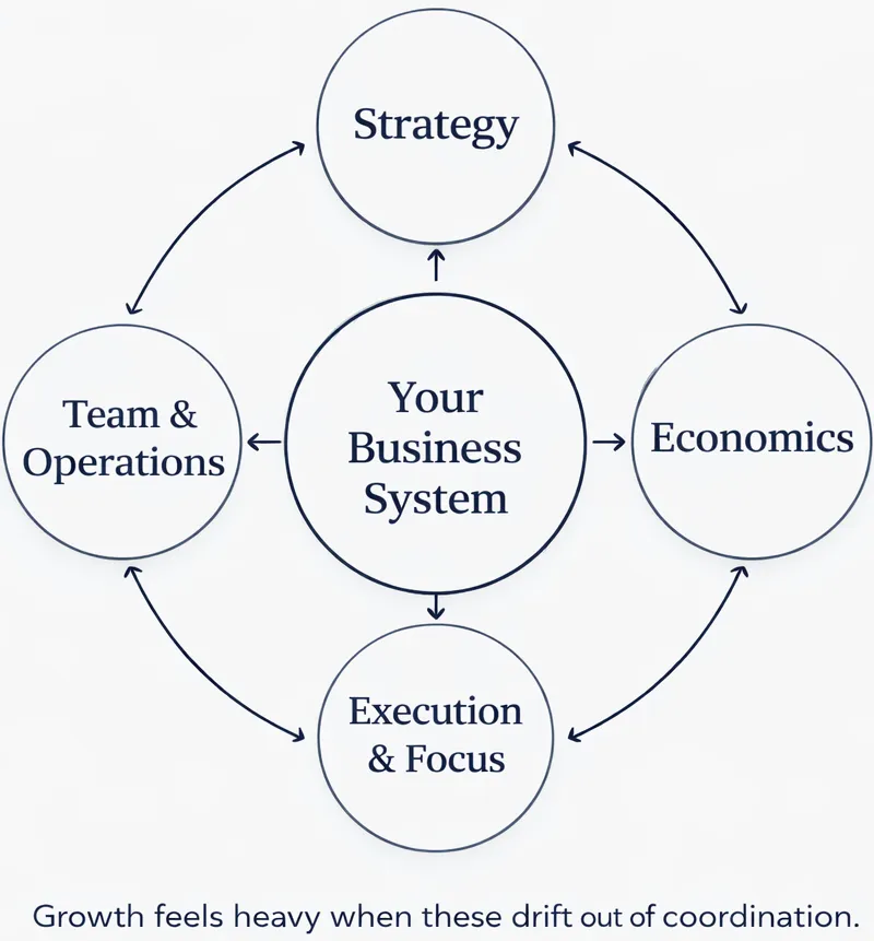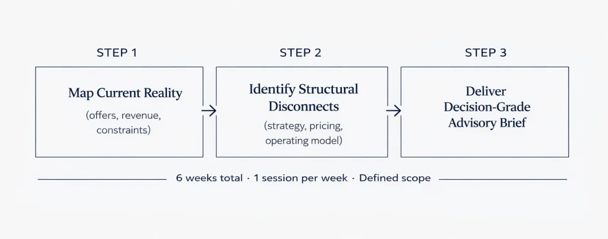 This is a focused 6-week advisory for founders who are already operating a real business but feel friction in how it’s structured.